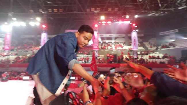 Momen itu terjadi di ujung acara Kopdarnas, di Tennis Indoor Senayan, Jakarta, Selasa (22/8) malam. Saat itu, Gibran tengah menyalami para kader-kader PSI usai berdialog dengan Yenny Wahid dan Budiman Sudjatmiko.