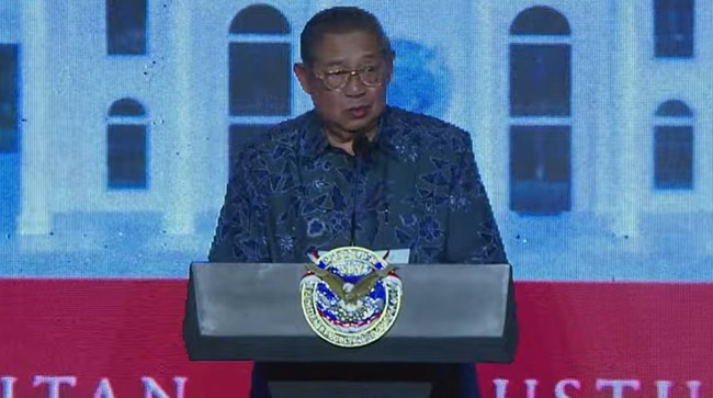 "Ketika saya dapat amanah memimpin Indonesia, saya ingat, ekonomi tumbuh baik, 6%. Demokrasi tumbuh baik. Saya bisa berdebat dengan siapapun, dari negara manapun, pakar apapun, polisi manapun bahwa Indonesia, bahwa kita, bisa menghadirkan dua-duanya," ungkap dia.