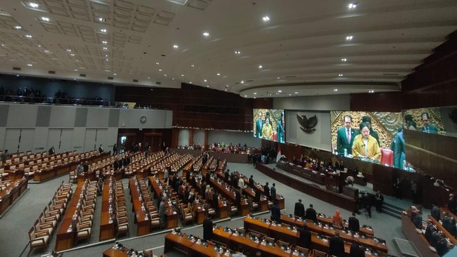 Rapat paripurna DPR RI ke-4 masa persidangan I tahun sidang 2023-2024 digelar di gedung DPR RI, Senayan, Jakarta, Selasa (29/8/2023). Rapat dipimpin langsung oleh Ketua DPR RI Puan Maharani, tampak di sana Wakil Ketua DPR RI Dasco, Lodewijk F. Paulus, Rachmat Gobel hingga Muhaimin Iskandar (Cak Imin).