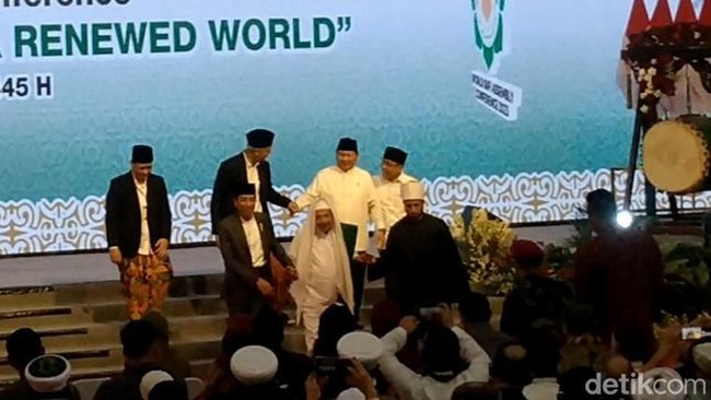 Momen hangat antara Menhan Prabowo Subianto dan Gubernur Jawa Tengah Ganjar Pranowo terjadi di Muktamar Sufi Internasional 2023. Kedua bacapres ini saling bergandengan tangan sambil tertawa bersama.