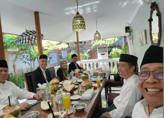 Diberitakan sebelumnya, Jokowi makan bareng Prabowo Subianto hingga Ganjar Pranowo. Dalam foto yang dilihatdetikcomdi Instagram Koordinator Staf Khusus Presiden, Ari Dwipayana, Selasa (29/8/2023), Jokowi duduk bersebelahan dengan Mensesneg Pratikno. Di depan Jokowi, ada Prabowo dan Ganjar Pranowo yang didampingi istri, Siti Atiqoh.