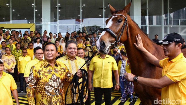 Simak Video 'Prabowo Tiba di DPP Golkar, Rangkul Airlangga & Lihat Kuda':