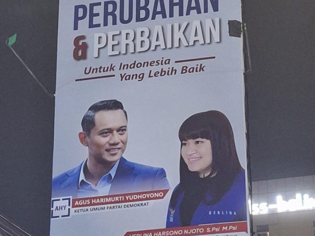 Dilansir detikJatim, Jumat (1/9/2023), di Jalan Kertajaya, Surabaya, wajah Anies dan AHY yang terpasang di reklame itu sudah berganti menjadi wajah AHY dan kader Demokrat Kota Surabaya Herlina Harsono Njoto.