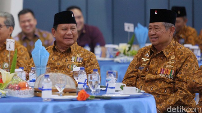 Momen akrab terjadi antara Presiden ke-6 RI Susilo Bambang Yudhoyono (SBY) dengan Menteri Pertahanan (Menhan) Prabowo Subianto dalam acara purnawirawan TNI-Polri. Partai Demokrat mengungkap peran Jenderal TNI (Purn) Agum Gumelar di balik pertemuan dua tokoh tersebut.