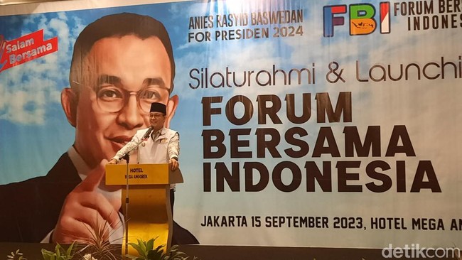 Bakal capres Anies Baswedan menghadiri peluncuran Forum Bersama Indonesia. Dalam forum itu, Anies bicara semangat perubahan dan perbaikan yang bisa dilakukan dengan cara konstitusional.