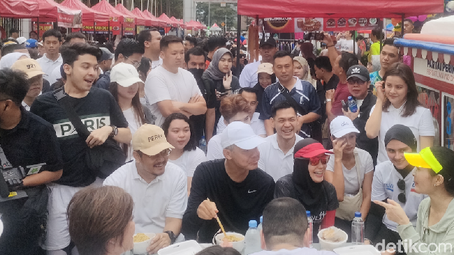 Pantauan detikcom di Car Free Day, Gelora Bung Karno, Jakarta pukul 07.25 WIB, Minggu (24/9/2023), Ganjar terlihat memutari area pedagang di samping Mall Fx. Ia kemudian berhenti di gerai mie ayam dan bubur untuk sarapan.