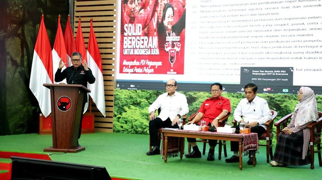 "Dengan demikian rakernas ini akan menempatkan petani, nelayan sebagai sentral di dalam jalan masa depan bagi Indonesia yang berdikari di bidang pangan yang di hulunya mengedepankan penguasaan ilmu pengetahuan research dan inovasi. Jadi nanti politik pangannya lah yang nanti oleh Bu Megawati akan beliau sampaikan sebagai perhatian utama kita," lanjut Hasto.