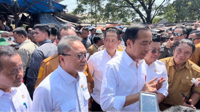 Viral aksi seorang ibu menyanyikan lagu 'PAN PAN PAN' saat meminta foto dengan Presiden Joko Widodo (Jokowi) yang tengah berkegiatan bersama Menteri Perdagangan Zulkifli Hasan. Jokowi tampak tersenyum dengan aksi tersebut.