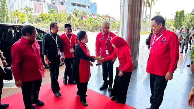 Megawati yang mengenakan pakaian merah dengan paduan celana hitam hadir ditemani putranya sekaligus Ketua DPP PDIP M. Prananda Prabowo. Selain Ganjar, kehadiran Megawati juga disambut oleh istri Ganjar Pranowo Siti Atiqoh, Sekjen PDIP Hasto Kristiyanto, Menseskab Pramono Anung, serta Ketua DPP PDIP Olly Dondokambey.