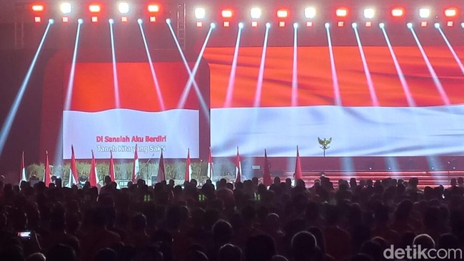 Adapun Rakernas IV PDIP ini digelar di Jiexpo Kemayoran, Jakarta, Jumat (29/9/2023). Acara awalnya dibuka dengan protokol partai yang menghadirkan Bendera Merah Putih dan Panji-panji Kehormatan Partai yang dibawa Paskibra.