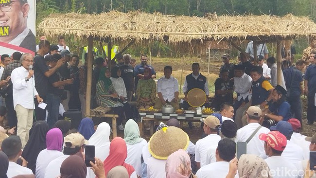 Selanjutnya, Anies-Cak Imin langsung duduk di sebuah gubuk milik petani di tengah sawah. Keduanya pun langsung menyapa seluruh masyarakat yang sudah duduk rapi menanti kehadiran mereka.