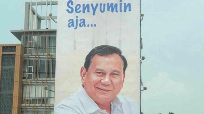 Baliho gambar Prabowo Subianto bertuliskan 'Diejek, Difitnah, Dijelekin, Senyumin Aja', muncul di Jakarta. Gerindra buka suara mengenai asal usul baliho tersebut.