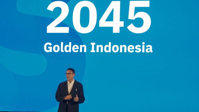 Ketua Badan Pemenangan Pemilu (Bappilu) PPP, Sandiaga Uno menyampaikan visinya untuk ekonomi menuju Indonesia Emas 2045. Sandiaga mengedepankan pencipataan lapangan kerja hingga harga bahan pokok terjangkau.