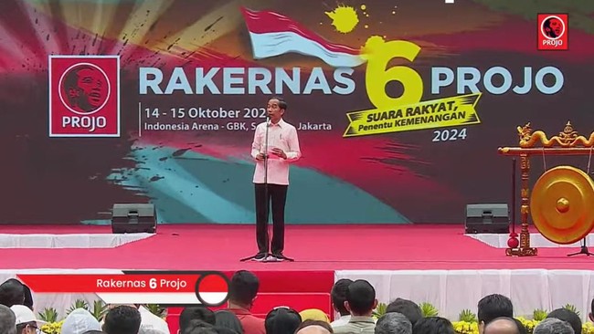 Hal itu disampaikan Jokowi dalam sambutannya dalam Rakernas Projo yang digelar di Indonesia Arena, Jakarta Pusat, Sabtu (14/10/2023). Jokowi awalnya mengatakan relawan harus menjaga suasana menjelang Pemilu 2024 tetap sejuk.