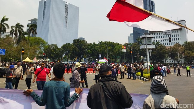 Massa dari dua kelompok yang demonstrasi di area Patung Kuda, Jakarta Pusat (Jakpus) telah membubarkan diri. Mereka bubar setelah mendapat kabar Mahkamah Konstitusi (MK) menolak gugatan uji materi terhadap UU Nomor 7 Tahun 2017 tentang Pemilu terkait batas minimal usia capres-cawapres.