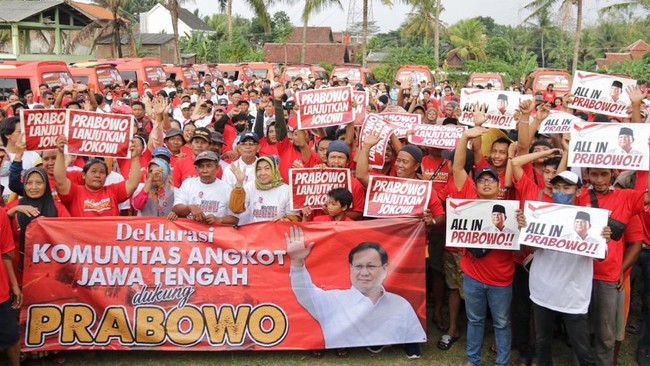 Kelompok sopir angkutan perkotaan (angkot) di Jawa Tengah (Jateng) mendeklarasikan dukungan kepada bakal calon presiden (bacapres) Koalisi Indonesia Maju (KIM), Prabowo Subianto. Mereka akan mendukung Prabowo di Pilpres 2024.