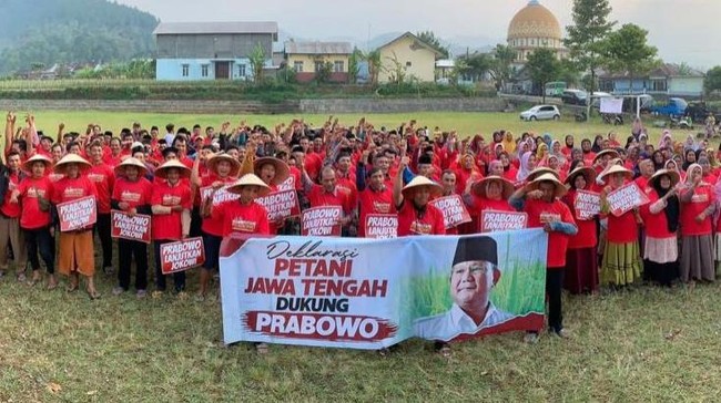 Kelompok petani di Jawa Tengah (Jateng) mendeklarasikan dukungan kepada bakal calon presiden (bacaapres) Prabowo Subianto pada Pilpres 2024. Mereka menyatakan siap mendukung pemenangan Prabowo di Pilpres 2024.