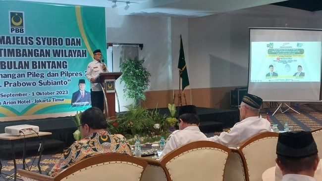 Masrur menambahkan, Majelis Syura dan Majelis Pertimbangan PBB se-Indonesia sudah melakukan Rakornas pada 30 September-1 Oktober 2023 di Jakarta. Rakornas tersebut melahirkan keputusan untuk mendukung penuh Ketua Umum PBB Yusril Ihza Mahendra.