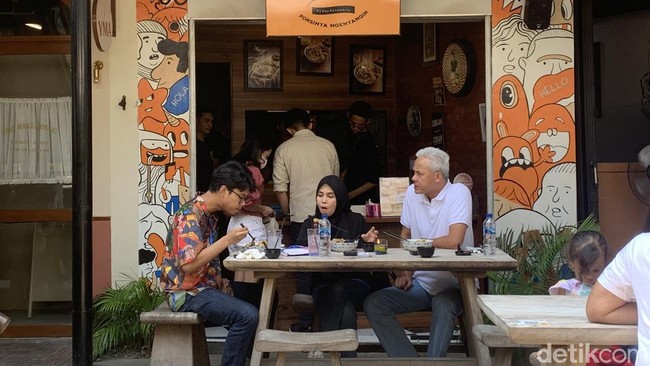Ganjar makan siang bersama istrinya, Siti Atiqoh dan anaknya, Muhammad Zinedine Alam Ganjar. Ganjar mengaku memilih makan siang di Bakmi Milenial lantaran disarankan oleh anaknya.