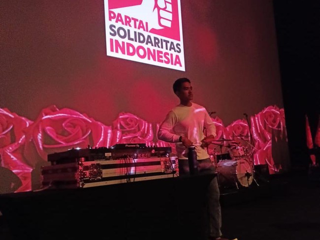 Ketum Partai Solidaritas Indonesia (PSI) Kaesang Pangarep menunjukkan aksinya menjadi disc jockey (DJ) atau disjoki. Kemampuan Kaesang itu terlihat saat PSI melakukan persiapan konser Ojo Rungkad dan deklarasi capres-cawapres yang didukung PSI.