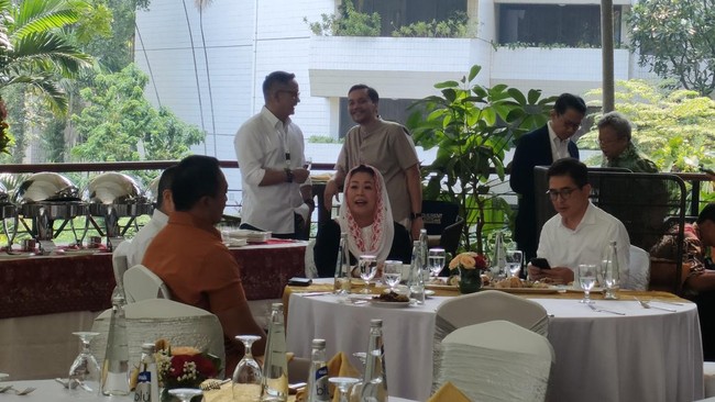 Para tokoh tersebut terlihat menyantap makanan bersama. Yenny tampak berbincang dengan Andika, sesekali mereka juga bercengkerama sambil tertawa. Adapun dalam acara yang akan berlangsung, sudah ada barisan relawan pendukung Ganjar dan Mahfud.
