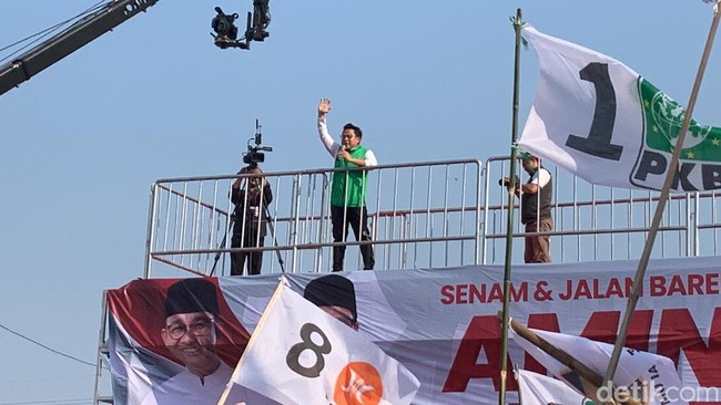 "Perubahan! Perubahan! Marilah kita teriakan agar menjadi energi kekuatan yang tidak bisa dicurangi siapapun," kata Cak Imin di depan massa.