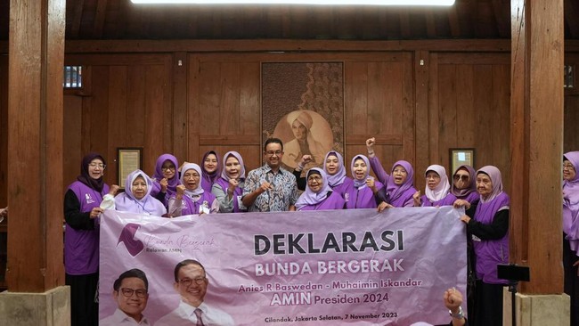 "Kami terima dukungan ini dengan hormat sebagai amanat yang akan kita emban bersama," kata Anies saat deklarasi Bunda Bergerak untuk AMIN di kediaman Anies Baswedan, Cilandak, Jakarta, Selasa (7/11/2023).