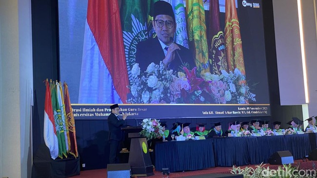 "Mohon maaf, ini hanya sekadar menyegarkan suasana. Sekali lagi, selamat, Profesor, selamat untuk UMJ, selamat untuk keluarga besar Pak Prof Ma'mun Murod. Kita semua ikut bangga dan bersyukur, insyaallah," lanjutnya.