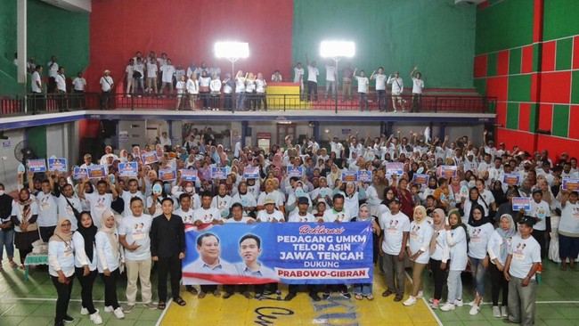 Pasangan Prabowo Subianto-Gibran Rakabuming Raka mendapatkan dukungan dari ratusan pengusaha telur asin Jawa Tengah (Jateng). Paguyuban telur asin menilai Prabowo-Gibran peduli terhadap UMKM.