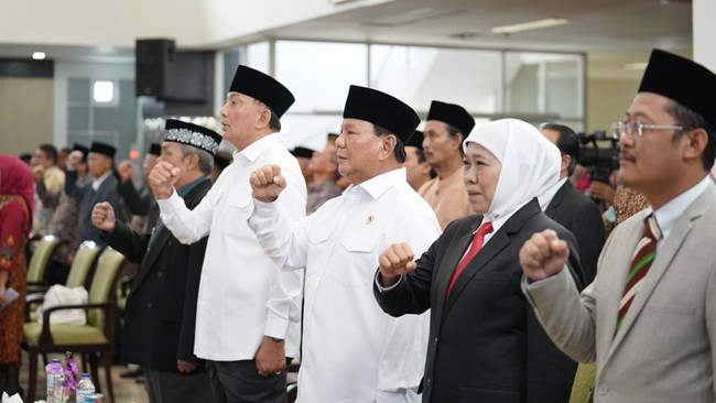 Calon presiden nomor urut 2 Prabowo Subianto menghadiri acara pengukuhan Prof Dr Ali Masykur Musa sebagai Guru Besar Kehormatan di Universitas Islam Malang (UNISMA). Gubernur Jawa Timur Khofifah Indar Parawansa juga hadir di lokasi.