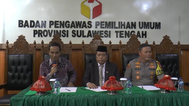 Turut hadir Ketua Bawaslu Sulteng Narsun, dan Kapolda Sulteng Irjen Agus Nugroho dalam konferensi pers ini.