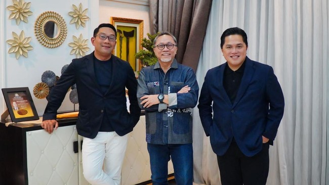 Ketua Umum PAN, Zulkifli Hasan (Zulhas), menggelar pertemuan dengan Ridwan Kamil dan Erick Thohir. Pertemuan ketiganya itu membahas mengenai pemilu hingga stabilitas politik nasional.