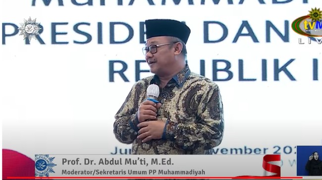 Momen lucu terjadi dalam 'Dialog Terbuka Muhammadiyah Bersama Calon Pemimpin Bangsa' yang menghadirkan capres nomor urut 2 Prabowo Subianto. Sekretaris Umum Muhammadiyah Abdul Mu'ti yang juga menjadi moderator di acara, melempar pantun gemoy untuk Prabowo.
