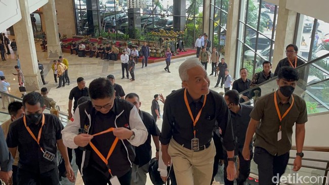 Pantauan detikcom di Hotel Grand Sahid, Sudirman, Jakarta Pusat, Senin (27/11/2023), pukul 08.58 WIB, Mahfud lebih dulu tiba di lokasi. Kemudian disusul Ganjar yang tiba pukul 09.03 WIB.