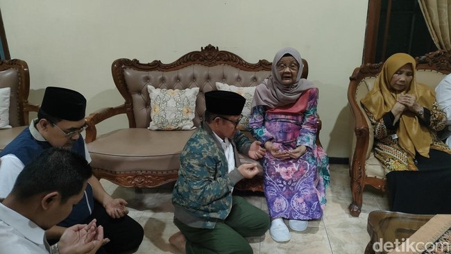 "Mohon doa, mohon restunya. Kita ingin restu ini supaya ikhtiar kita di kampanye dilancarkan oleh Allah SWT," tutur Cak Imin sambil memegang tangan sang ibu.