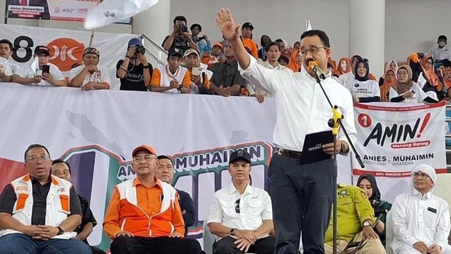 Calon presiden nomor urut 1, Anies Baswedan, menggelar kampanye di Cibinong, Kabupaten Bogor. Anies berjanji akan membangun transportasi umum yang lebih luas dan terjangkau bagi warga.