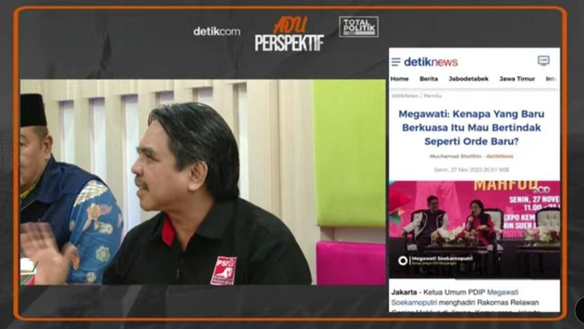"Sesudah pidato Ibu Mega bilang bahwa ada kezaliman, yang dia juga bikin pidato sejenis itu. Jadi ini seperti ada sebuah kesepakatan di kubu Ganjar atau kubu PDIP untuk menampilkan sebuah gaya yang garang," kata Ade Armando saat acara Adu Perspektif detikcom x Total Politik di Youtube detikcom Rabu (29/11/2023).