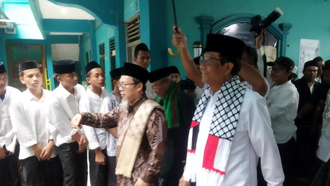 Kedatangan Mahfud juga disambut oleh Mantan Gubernur Banten Rano Karno. Para santri tampak turut serta menyambut kedatangannya. Tak hanya itu ratusan jama'ah tampak menyambut kedatangan Mahfud.