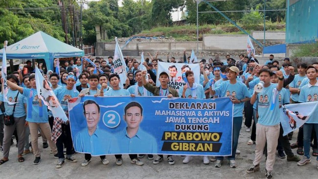 "Kami mahasiswa dari civitas akademika lintas universitas, institut dan perguruan tinggi seluruh Jawa Tengah menyatukan langkah mendukung Prabowo Subianto-Gibran Rakabuming Raka menjadi Presiden-Wakil Presiden Indonesia melalui Pilpres 2024," kata Koordinator Mahasiswa dan Aktivis Jateng, Muhammad Sabiq, Jumat (1/12/2023).