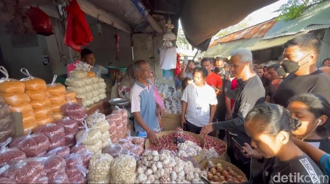 Pantauan detikcom di lokasi, Sabtu (2/12/2023), Ganjar tampak berbincang dengan para pedagang. Ganjar pun menanyakan harga bahan pokok.