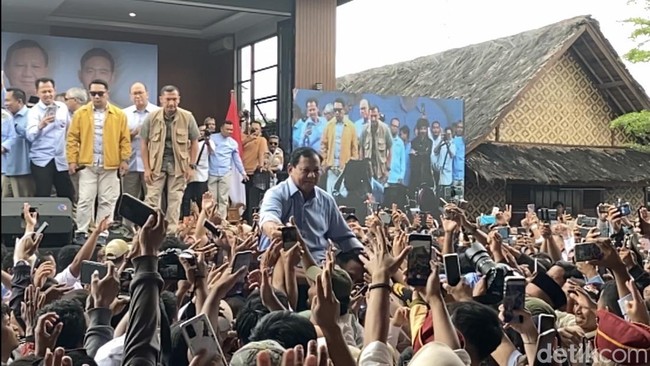 Pantauan detikcom, Sabtu (2/12/2023) siang, Prabowo menghadiri acara konsolidasi pilpres bersama tokoh masyarakat (tomas) dan tokoh agama (toga) di Pool Primajasa, Tasikmalaya, Jawa Barat. Prabowo menyampaikan pidatonya di hadapan para pendukungnya itu.