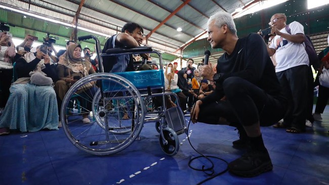 Hal itu diungkapkan Ganjar usai bertemu para disabilitas Lombok di Graha Futsal, Kota Mataram, Nusa Tenggara Barat (NTB), Minggu (3/12/23). Mulanya, seorang penyandang disabilitas, Zainal Abidin (50) mengeluhkan kesulitan untuk mengakses bilik suara di tempat pemungutan suara (TPS).