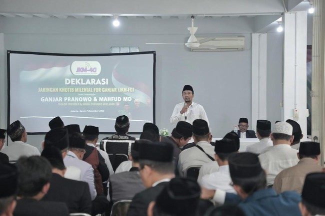 Dukungan untuk pasangan capres-cawapres nomor urut 3, Ganjar Pranowo dan Mahfud MD pada Pemilu 2024 terus mengalir. Kali ini, dukungan tersebut datang dari ratusan perwakilan khatib, dai, ustaz dan ustazah se-Jabodetabek yang tergabung dalam Jaringan Khatib Milenial For Ganjar (JKM-4G).