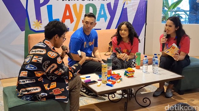 Putri capres nomor urut 1 Anies Baswedan, Mutiara Annisa Baswedan, dan putra capres nomor urut 3 Ganjar Pranowo, Muhammad Zinedine Alam Ganjar, bermain gim bersama dalam acara 'MikirSantai PlayDay' di kawasan Kemang, Jakarta Selatan. Dalam acara itu mereka memberikan pesan positif kepada generasi Z dalam Pemilu 2024.