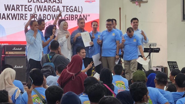 Relawan Warga Tegal (Warteg) Jakwire mendeklarasikan dukungannya kepada pasangan capres-cawapres Prabowo Subianto dan Gibran Rakabuming Raka. Relawan itu memberikan dukungan dan berharap warung makan tegal (Warteg) tidak digusur jika Prabowo dan Gibran menang dalam pilpres 2024.