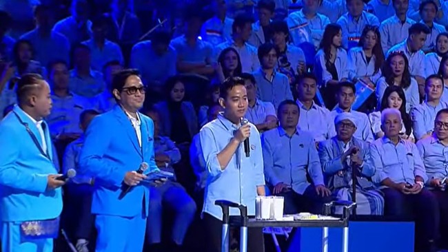 Adapun acara di SICC merupakan acara 'Waktunya Indonesia Maju'. Selain Prabowo-Gibran, tampak para ketua umum partai koalisi Indonesia Maju menghadiri acara itu.