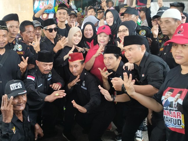 Usai keliling pasar, Atikoh menjadi sasaran foto. Ada warga yang meminta selfie, hingga ada pendekar berpakaian yang mengajak foto dengan pose silat.