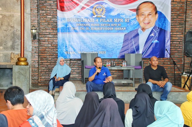 Dalam kunjungan kerja di Kota Bogor, Jawa Barat, Sabtu (16/12), Wakil Ketua MPR RI Sjarifuddin Hasan (Syarief Hasan) mengadakan dua kali pertemuan massa dengan masyarakat.