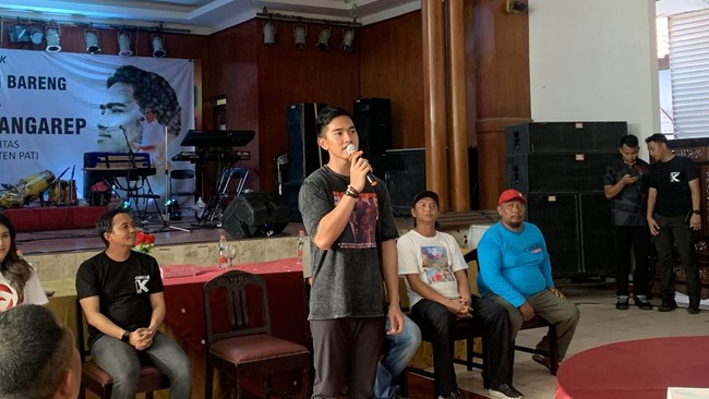 Momen itu terjadi saat Kaesang bersama relawan berada di Rumah Makan Renggo Sabtu Baru, Kabupaten Pati, Jawa Tengah, Minggu (17/12/2023). Kemudian terdengar dari dalam rumah makan geberan sepeda motor.