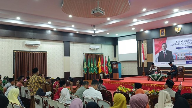Menko Polhukam yang juga cawapres nomor urut 3, Mahfud Md, ditanya alasan menteri tak berhenti saat maju capres atau cawapres ketika dialog di Universitas Muhammadyah Sumatra Barat. Apa kata Mahfud?